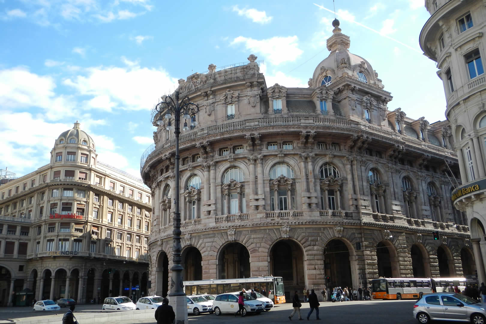 Qui si trova anche il Palazzo della Borsa ed il Teatro Carlo Felice, che dietro la sua facciata neoclassica nasconde un edificio completamente ristrutturato con uno spazio scenico di 574 mq, 2000 posti e tre palcoscenici.