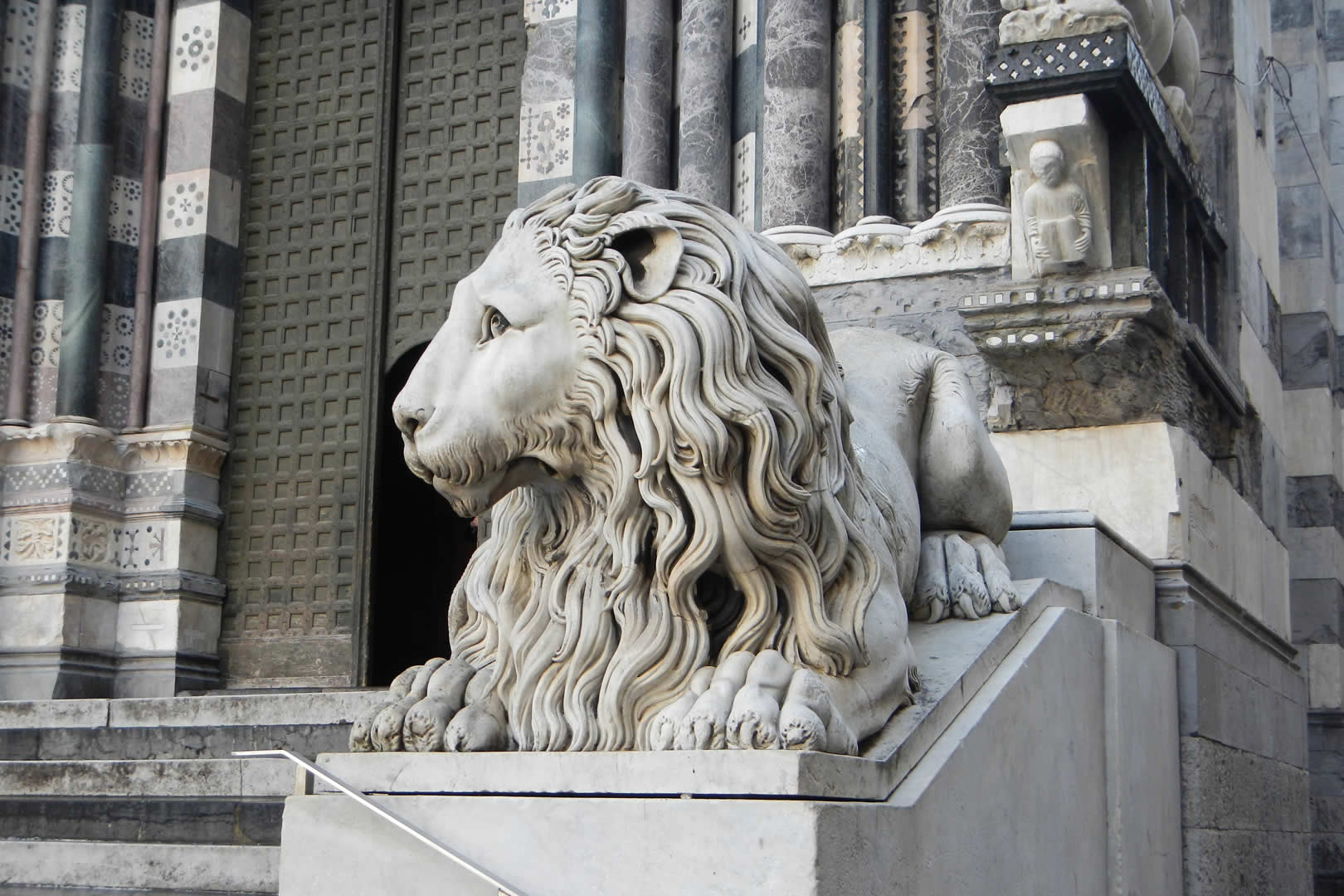 Simbolo della fede e della ricchezza della città, porta con sé i segni delle trasformazioni avvenute nei secoli. Dietro la sua facciata bianca e nera la storia si mischia alla leggenda: dal piatto che la tradizione vuole abbia accolto la testa del Battista, al Sacro Catino, una reliquia dell'Ultima Cena.
